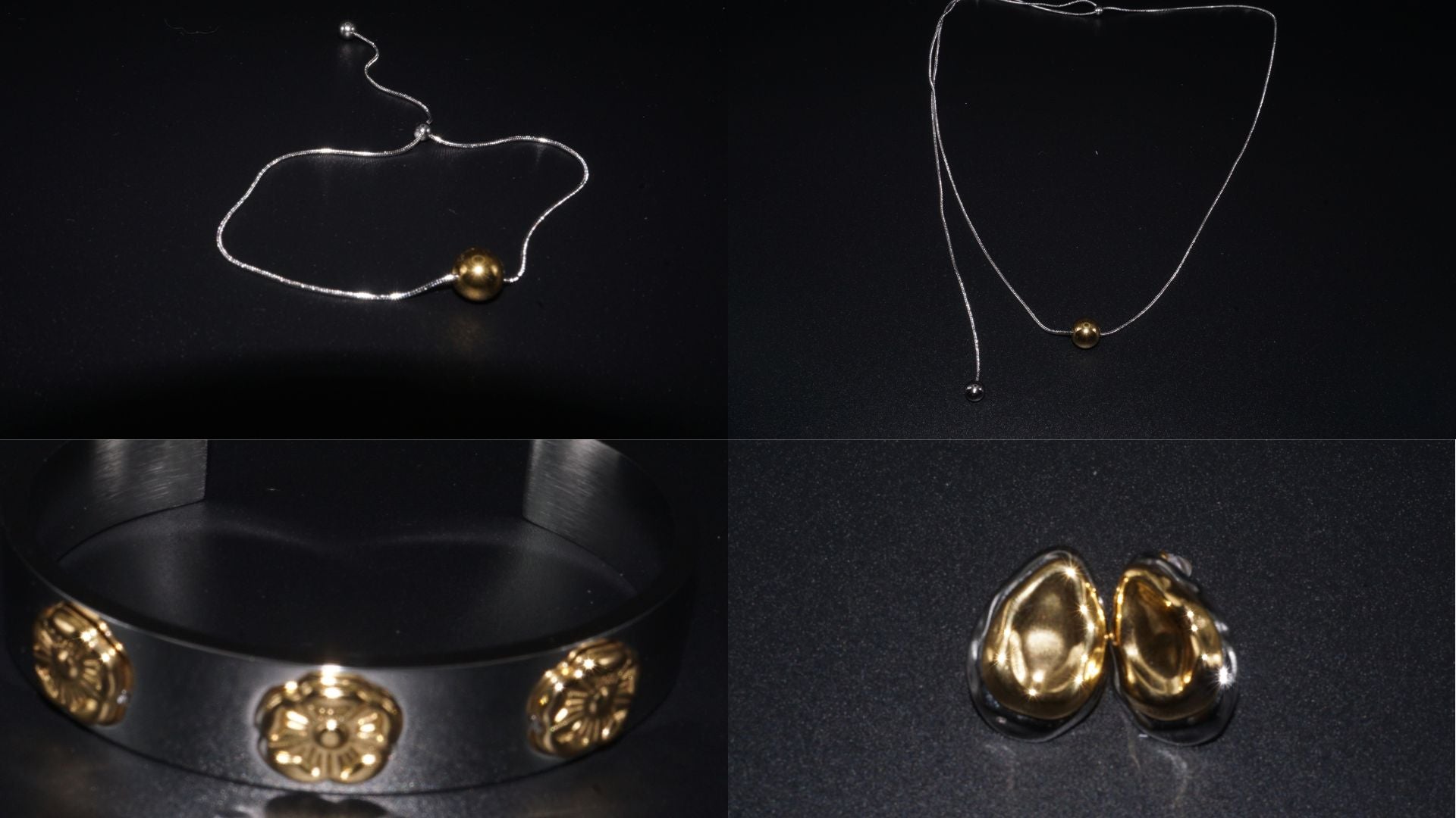 Indulge in the epitome of refined style with the Anomi Quration - Que's Quorner Full Set. This sophisticated collection features the owner's personal favorites: an elegant dual-tone necklace, a matching bracelet, a statement bangle cuff, and a distinctive earring. Each piece is meticulously curated to elevate your ensemble with understated luxury and contemporary flair.