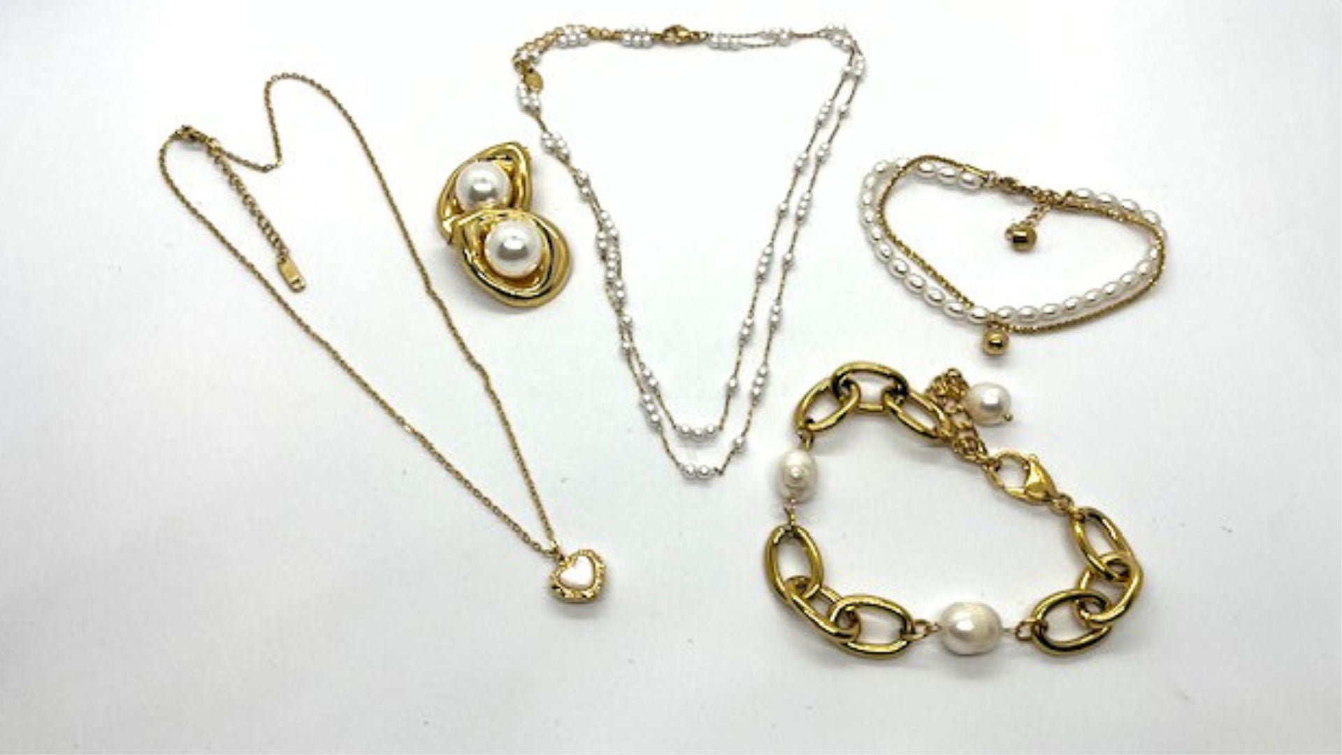 Indulge in the epitome of refined luxury with our Aura Quration: Elevated Elegance Full Set. This exquisite collection features six meticulously crafted pieces—two necklaces, two bracelets, and two pairs of earrings—each adorned with lustrous gold and delicate pearl elements. Every piece is designed to complement one another while standing beautifully on its own, offering versatile styling options for the discerning connoisseur who appreciates subtle opulence and timeless sophistication.