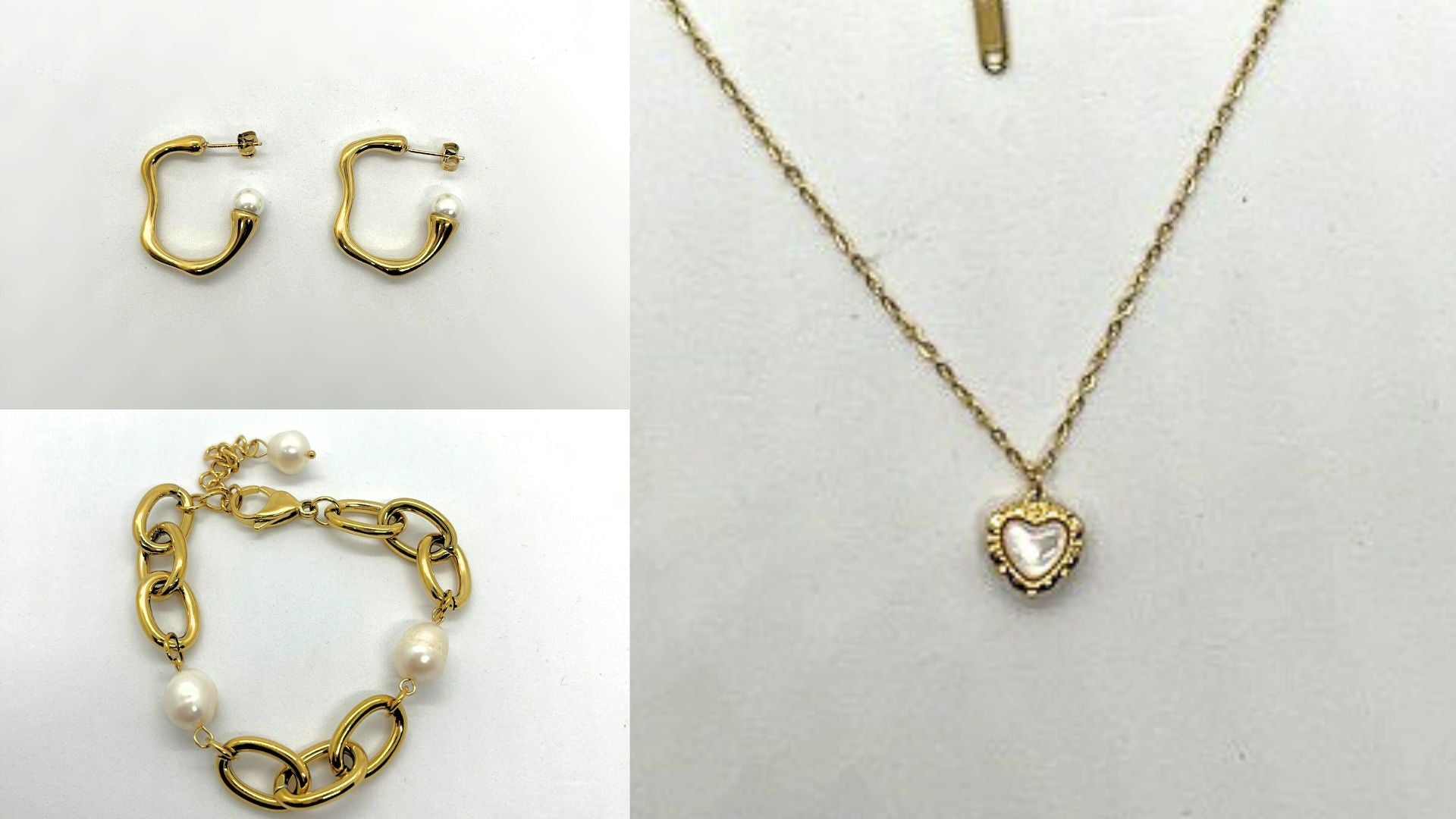 The Aura Quration: Elevated Elegance Mini Set 1 presents a harmonious trio of gold treasures adorned with lustrous pearl elements. This sophisticated collection features a delicately crafted bracelet, a statement necklace, and an exquisite earring, each piece meticulously designed to complement one another while maintaining individual distinction. The warm gold tones paired with luminous pearls create an aura of refined elegance suitable for both special occasions and elevated everyday wear.